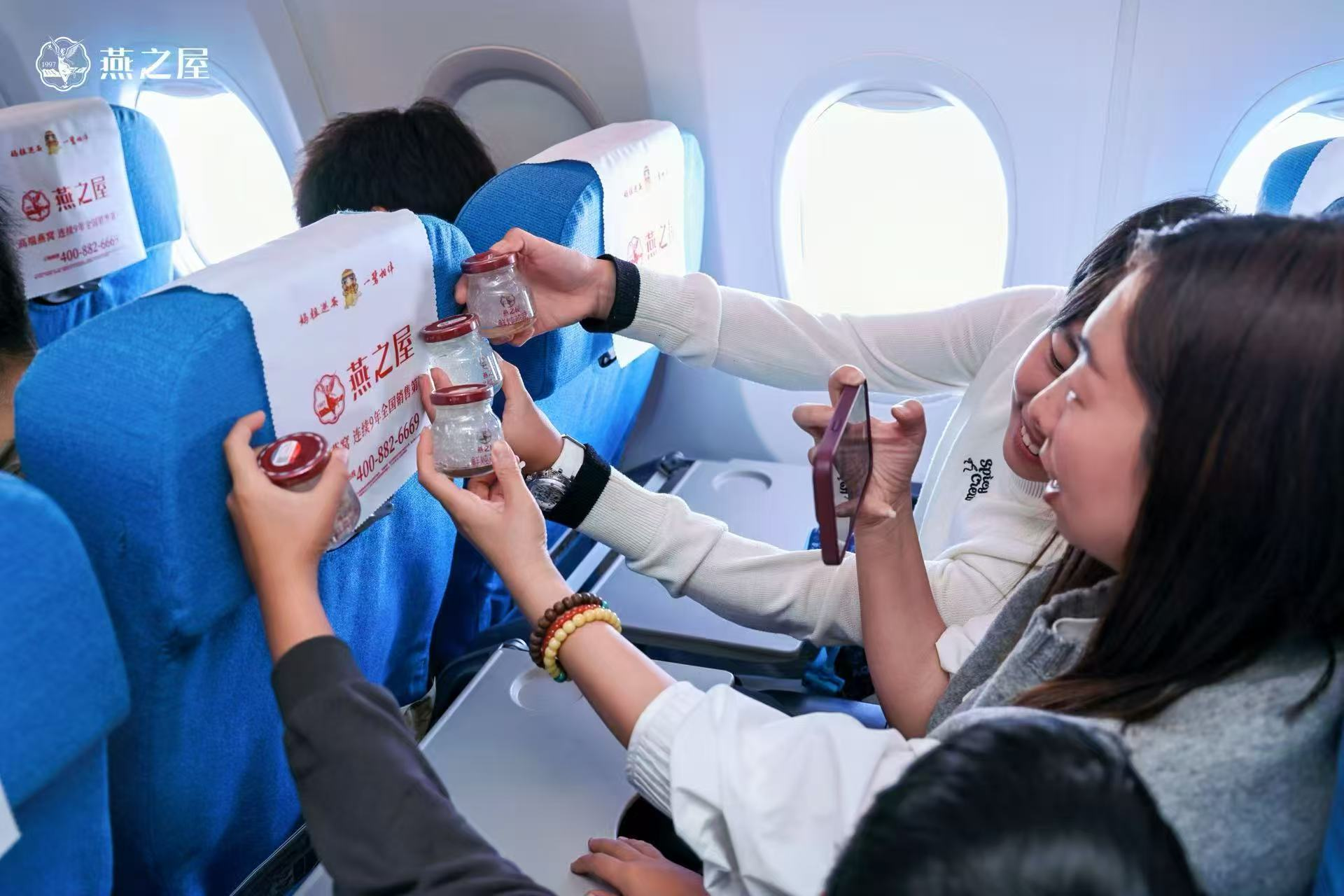 燕之屋與廈門航空打造的婦女節(jié)主題航班由廈門起飛,前往北京。登機(jī)前,節(jié)日氣息就已從登機(jī)口蔓延開來。燕之屋在登機(jī)口設(shè)置品牌展區(qū),邀請(qǐng)旅客拍照打卡,并派送燕之屋燕窩肽蘇打水,溫暖開啟活動(dòng)的首波福利,陪伴旅客愉快登機(jī)。